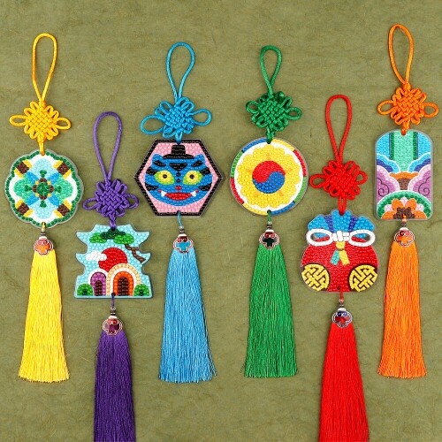 - 보석십자수 전통 문양 복주머니 아크릴 노리개 만들기 1세트