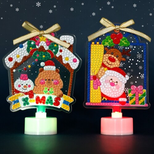 - 보석십자수 크리스마스 하우스 창문 산타 아크릴 무드등