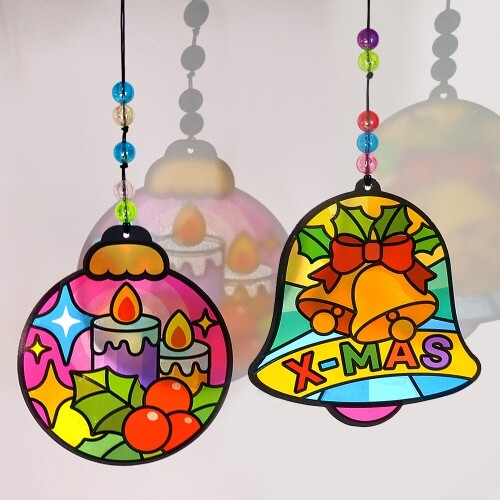 - 크리스마스 장식 스티커 썬캐쳐 책갈피 모빌 만들기