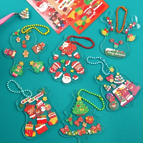 - 투명 아크릴 크리스마스 모양 열쇠고리 스티커 세트 6개입