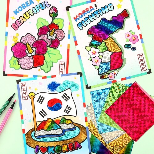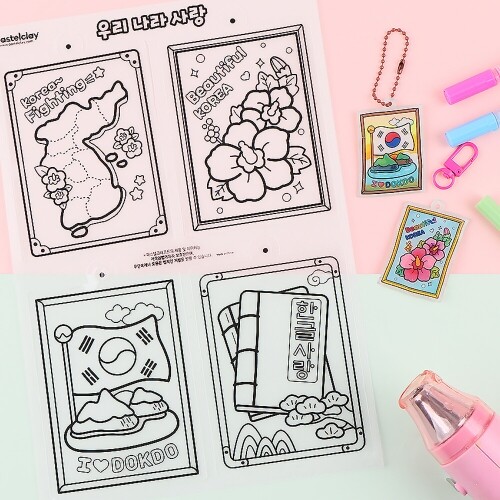 - 나라 사랑 독도 무궁화 태극기 자개 아크릴 키링 열쇠고리 만들기 세트