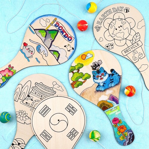 - 우드 민화 독도 지구 라켓 공놀이 죽방울 놀이 만들기 패키지 1세트