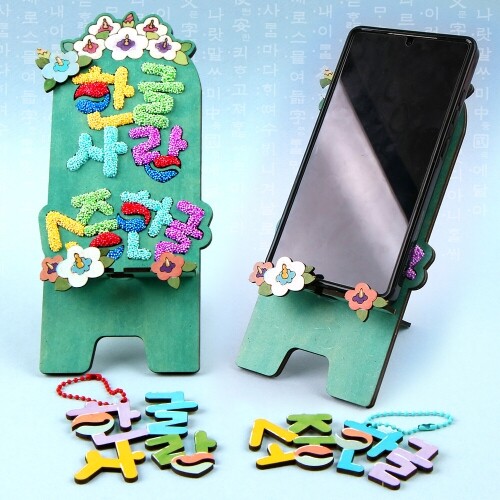 - 입체 우드 세로형 한글 사랑 무궁화 핸드폰 거치대 1개입