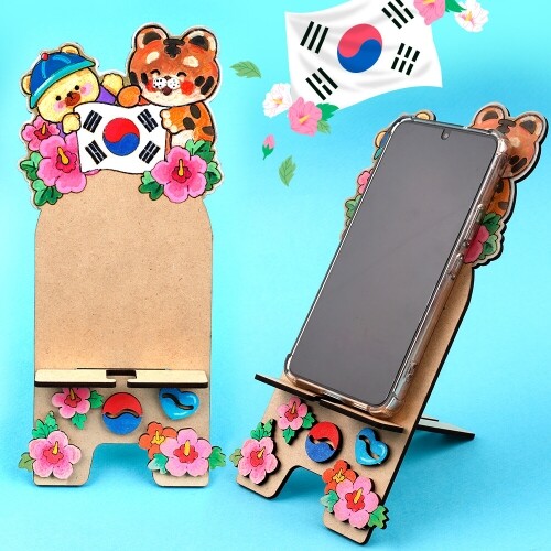 - 우드 세로형 호랑이 무궁화 태극기 핸드폰 거치대 1개입