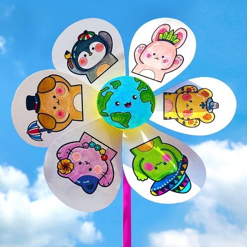 - 4개입 종이 다문화 동물 지구 사랑 색칠 바람개비 꾸미기