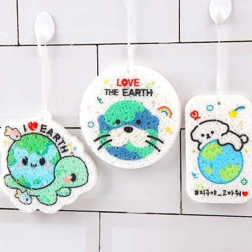 - 지구 환경 사랑 친환경 셀룰로오스 압축 스펀지 수세미 1개입