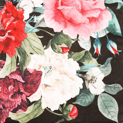 - 냅킨아트 SL_OG_051701 Painted Baroque Bouquet on Black 냅킨20매 33x33cm