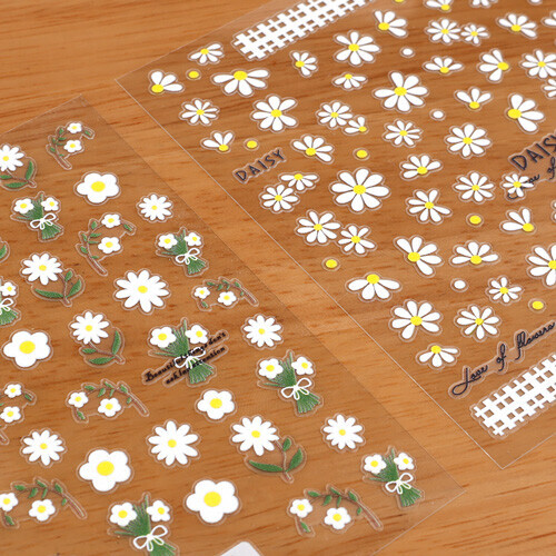 화이트 데이지 스티커 레진 네일 아트