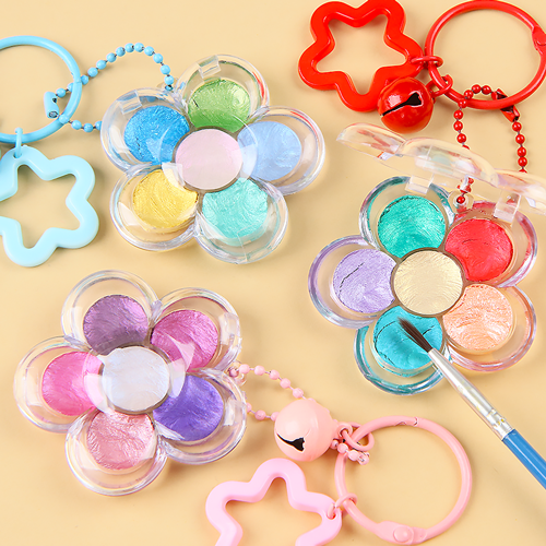 수채화 펄 고체 물감 6색 플라워 팔레트 키링