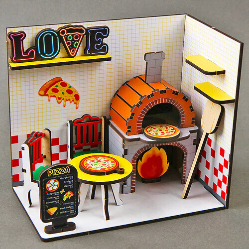 인쇄 우드 DIY 미니어처 러브 화덕 피자 가게 만들기