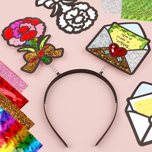 H-10-167 / 구성품 : 종이도안+포일6장+머리띠+스프링2개+투명테이프+설명서 / 카네이션7.8x11.1cm, 편지9x10cm