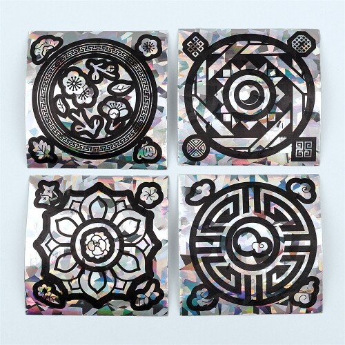 4개입 홀로그램 전통 문양 단청 꽃 자개 스티커