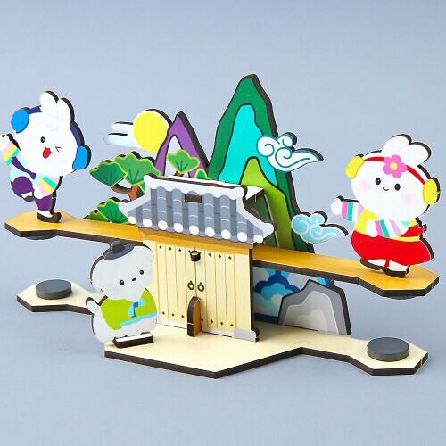 인쇄 우드 DIY 미니어처 널뛰기 자석 놀이 만들기 패키지