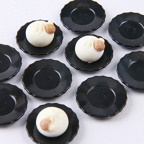 10개입 미니어처 검정 납작 물결 접시