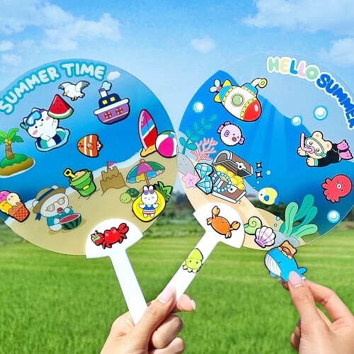 - PVC 여름 바다 스티커 원형 손 부채 만들기 1개입