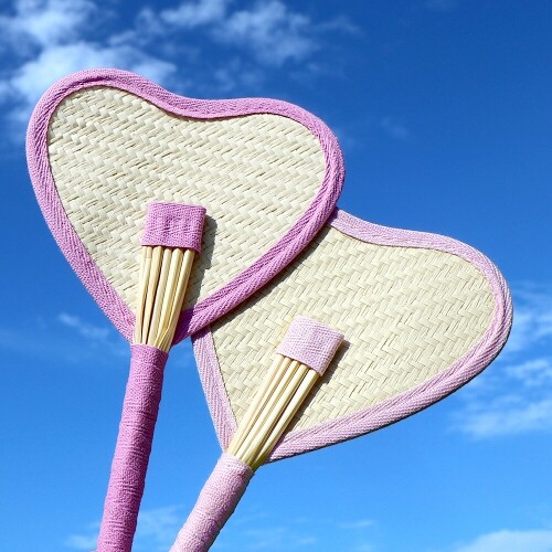 - 여름 라탄 밀짚 하트 손 부채 1개입