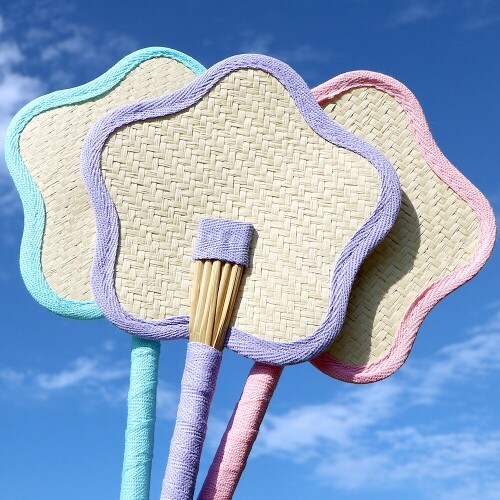 - 여름 라탄 밀짚 플라워 꽃 손 부채 1개입