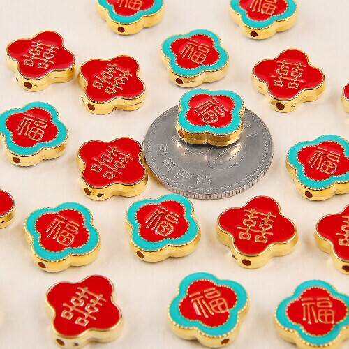- 클로버 복 희 메탈 비즈 참 장식 10개입