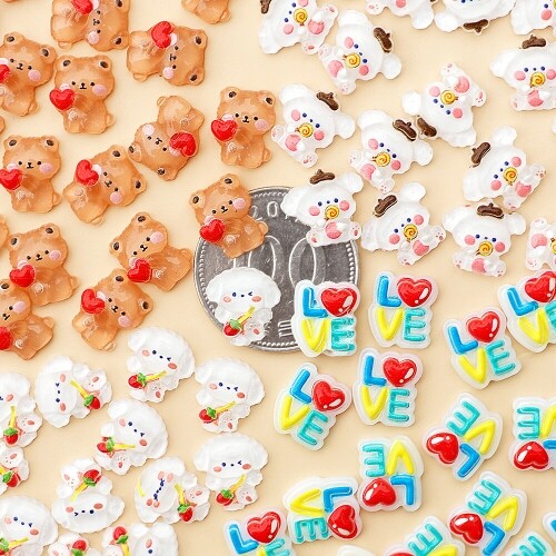 - 레진 아트 투명 러브 강아지 곰돌이 파츠 약 50개입