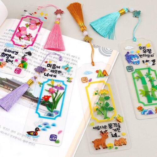 - 매란국죽 테마 스티커 레터링 투명 북마크 책갈피 세트