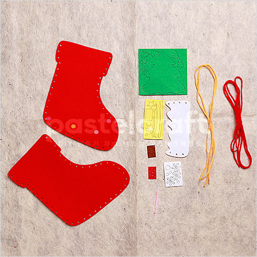 DIY 부직포실꿰기 성탄양말가방 16x20cm 5개입