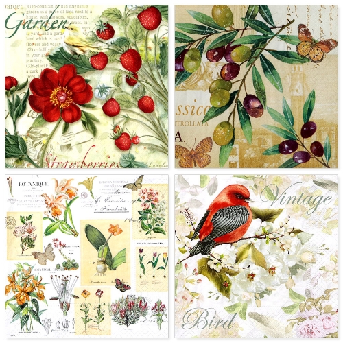 냅킨아트 4종 20매입 네츄럴 그린 빈티지 페이퍼 디자인
