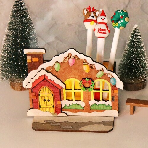 우드 크리스마스 눈덮인 하우스 다용도 꽂이 데코판