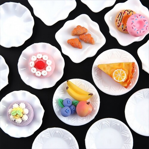 미니어처 화이트 플라스틱 무늬 접시 5개입