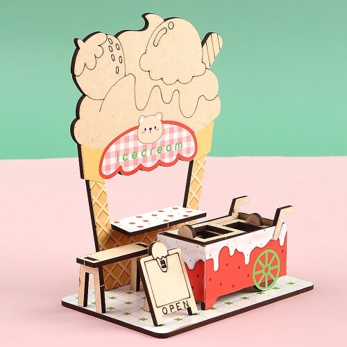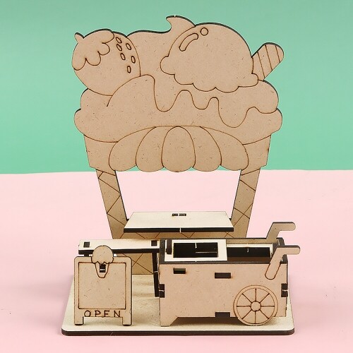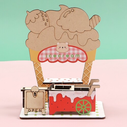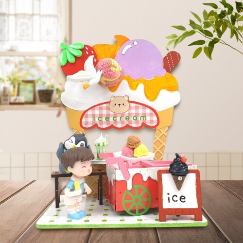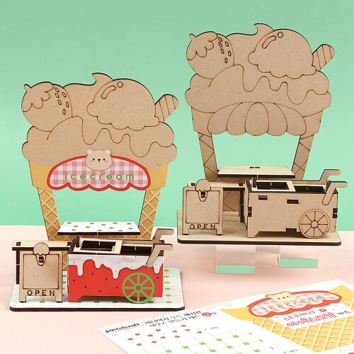 미니어처 우드 배경판 하우스 만들기 세트 18호 스트로 베리 아이스크림 카트