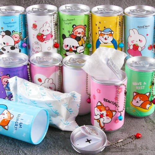 휴대용 미니 방울 동물 캔 물티슈 4개입