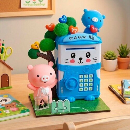 ATM 비밀번호 지폐 금고 고양이 저금통 은행놀이 1개입