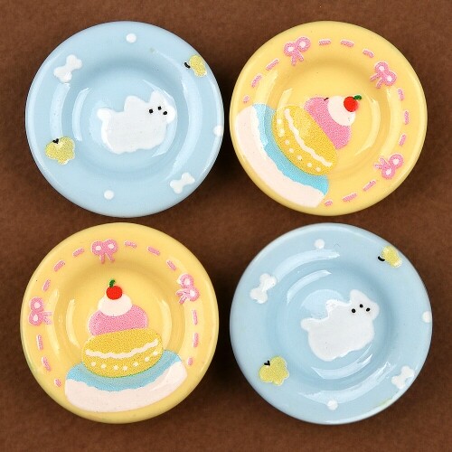 미니어처 원형 리본 강아지 케이크 접시 장식 데코 4개입