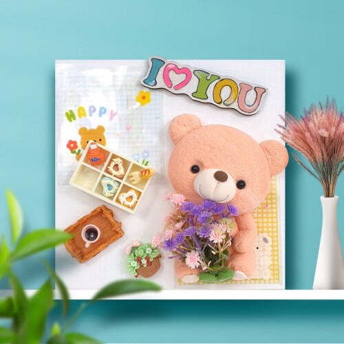 체크 곰돌이 플라워 선물 포장 비닐 약 100장입