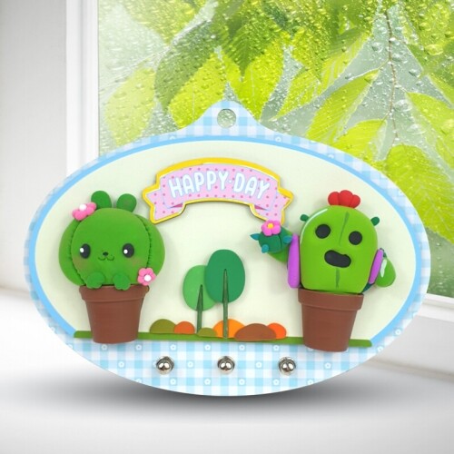 인쇄 우드 DIY 미니어처 선인장 하우스 입체 방문 걸이 만들기 놀이