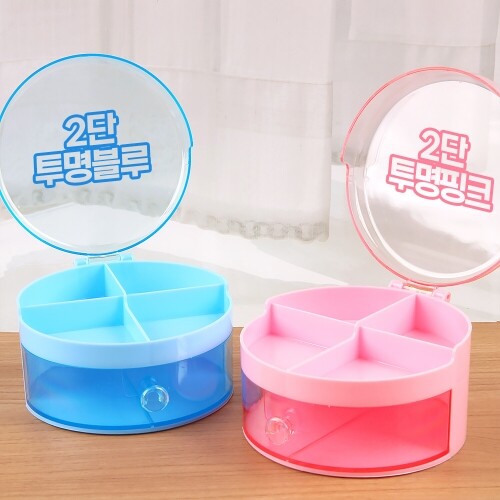칼라 투명 원형 2단 정리 다용도 보관함 1개입