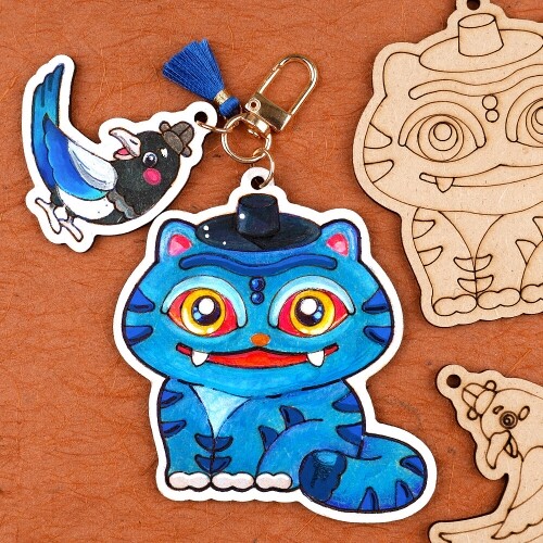 팬시 우드 까치 호랑이 키링 열쇠고리 만들기 1세트
