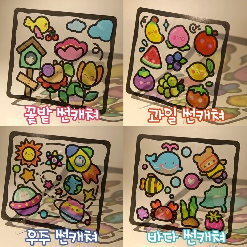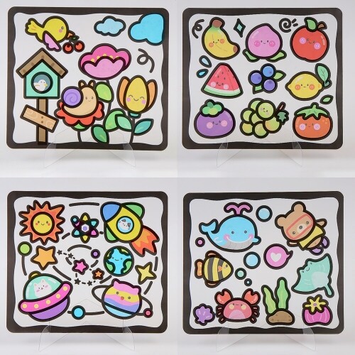 동물 과일 우주 바다 테마 스티커 썬캐쳐 모빌 액자 만들기 그림자 놀이 1개입