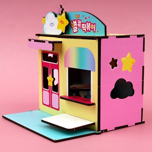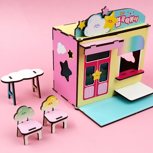인쇄 우드 DIY 미니어처 솜사탕 별 콕 떡볶이 가게 만들기 놀이 1개입