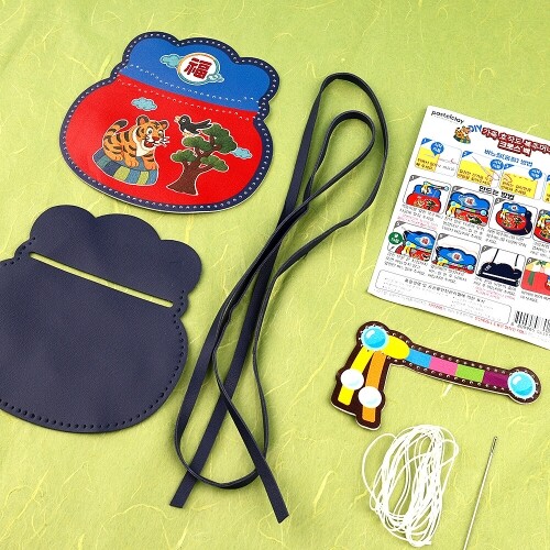 DIY 가죽 호작도 자수 복주머니 크로스백 가방 만들기 1개입