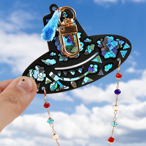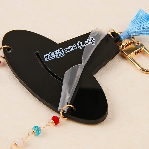 Y-02-114 / 자개스티커 별도 / 구성품 : 아크릴 갓+구슬끈+키링+타슬 / 7.7x5.7cm