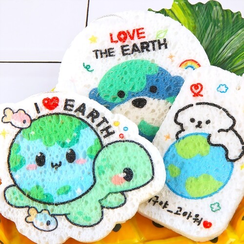지구 환경 사랑 친환경 셀룰로오스 압축 스펀지 수세미 1개입
