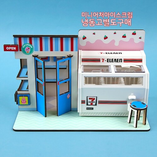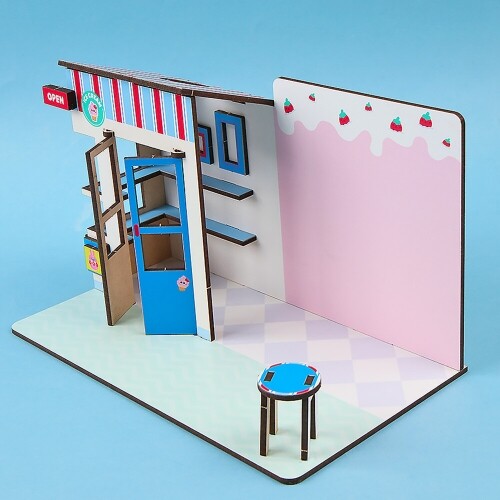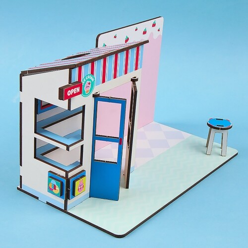 인쇄 우드 DIY 미니어처 부스 아이스크림 가게 만들기 놀이 1개입