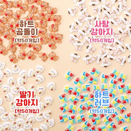 레진 아트 투명 러브 강아지 곰돌이 파츠 약 50개입