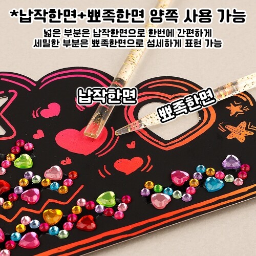 Q-10-140~143 / 4종 택1 / 띠 가로길이-26cm, 세로길이-클로버12.7cm, 심플11.9cm, 둥근12.8cm, 별하트10.8cm / 구성품 : 도안+보석스티커+스크래치 전용펜(납작한면+뾰족한면 양쪽 가능)
