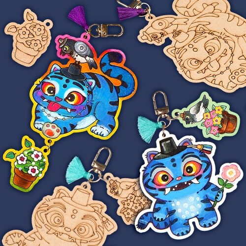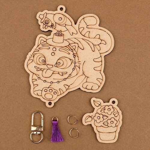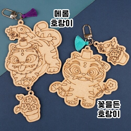 | Y-02-164, Y-03-167 / 2종 택1 / 구성품 : 우드 + 태슬 + 키링 + 고리 / 메롱호랑이8.8x10.5cm(화분4x4.6cm), 꽃을든호랑이10x9.2cm(까치화분3.7x5.8cm) |