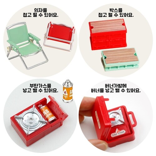 Y-07-340~341 / 2종 택1 / 완제품이 아닌 DIY 조립 하는 제품 입니다. 구성품 : 캠핑의자+캠핑테이블+캠핑박스+버너+부탄가스+버너가방+주전자+캠핑그리들(팬)=8종 1세트