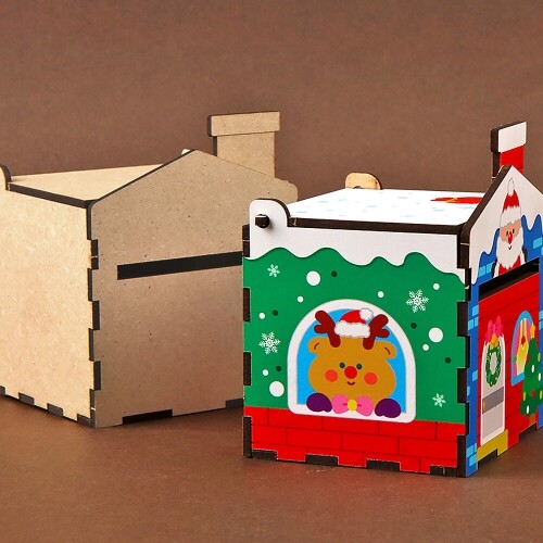 인쇄 우드 DIY 미니어처 크리스마스 굴뚝 하우스 보관함 만들기
