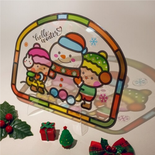 크리스마스 눈사람 스티커 썬캐쳐 액자 만들기