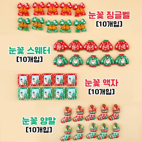 A-51-556~559 / 4종 택1 / 옵션별 레드5개+그린5개=10개입구성 / 징글벨25x27x23mm,스웨터29x25x9mm,액자21x25x9mm,양말23x31x8mm