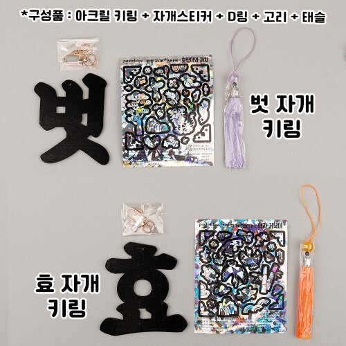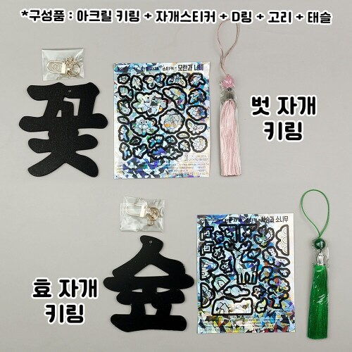 F-05-401~404 / 4종 택1 / 구성품 : 아크릴 키링 + 자개스티커 + D링 + 고리 + 태슬 / 벗7.1x9cm, 숲8.5.x8.8cm, 꽃8.3x8.9cm, 효8.5x9cm / 두께3mm